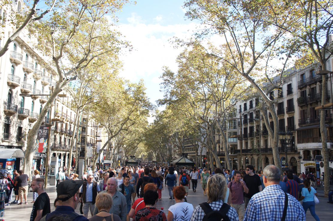 Meandering through La Rambla is fun! It’s a big pedestrian street (there are two car lanes on each side, but the walkway never breaks for car traffic) with shops and restaurants on each side and carts along the middle. The trees around are extra pretty too.